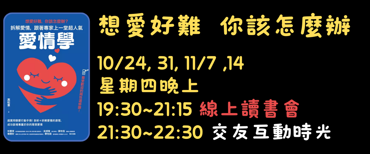 愛情共學團 + 聯誼配對趣。想愛好難,我們一起來拆解愛情吧!《用連續四個週四晚上進行》